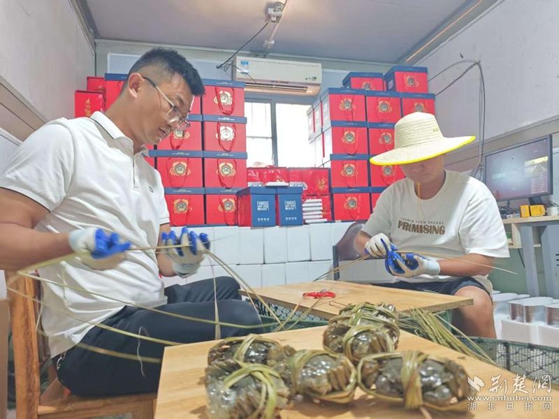 为了让更多人认识分支蟹,于昌明今年注册了“于蟹记”品牌,并从包装到销售等各个方面进行了改进。我们优化线下礼盒包装,并与县及周边城市的超市、餐厅合作,确保当地消费者始终能买到新鲜的螃蟹。线上,“直播热潮”迎头赶上,邀请抖音网红到蟹池现场直播抓螃蟹、煮螃蟹的过程,还开通了线上频道接受顾客订单。