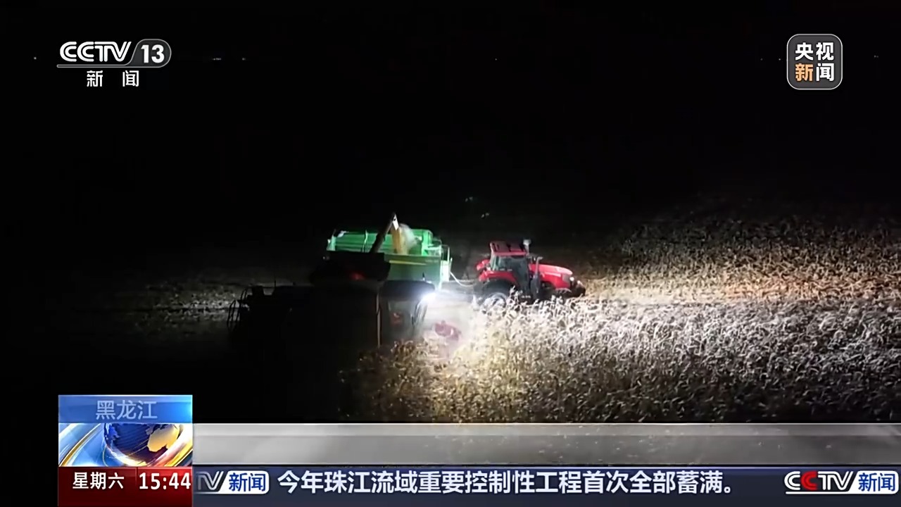 近期,黑龙江省多地出现雨雪天气,对秋粮收成造成一定影响。同江省农民加紧耕作,日夜收割秋粮。