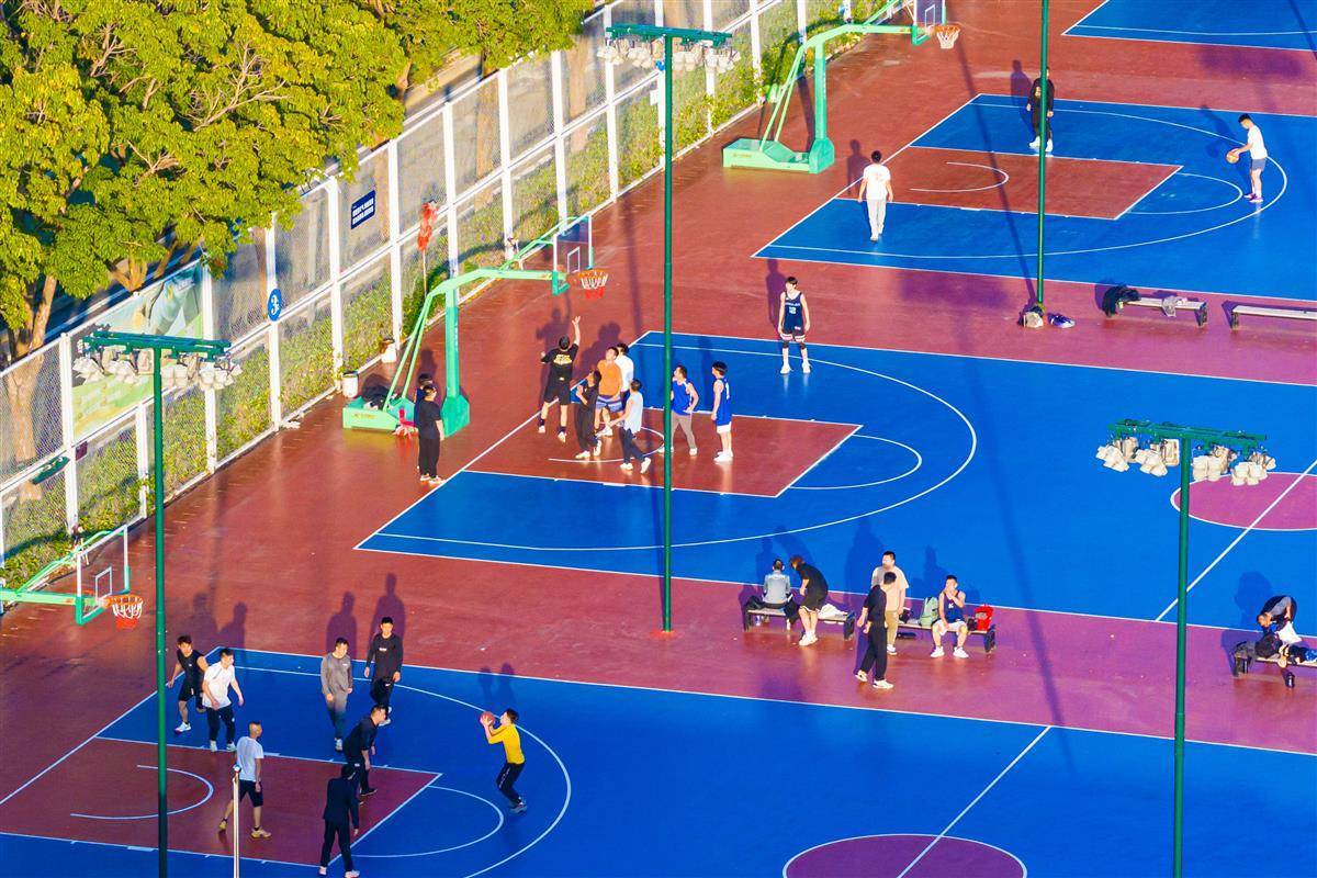 10月22日,市民趁着好天气,在武汉大子湖体育中心打篮球,“拥抱”久违的阳光。 (图片提供:湖北日报全Media记者于)