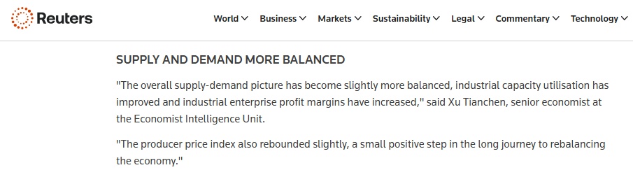 报道援引经济学人智库经济学家的话说,当前中国供需格局相对平衡,工业产能利用率不断提高,企业产能利用率不断提高。利润率改善。工业品出厂价格指数也小幅回升。 “这只是经济再平衡漫长道路上的一小步,但这也是一个积极的信号。”