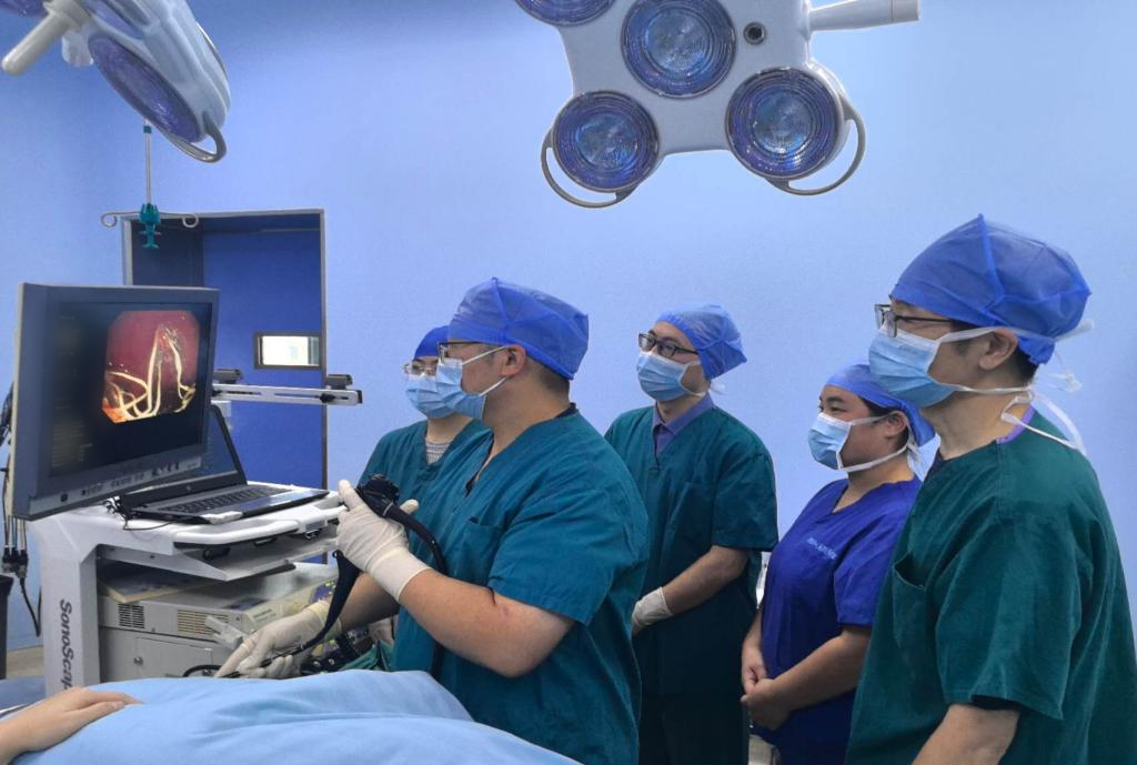 手术过程中,团队将一根60厘米的覆膜支架精准地经口插入患者十二指肠,减少了手术时间。通过改变食物流向来促进营养吸收,同时调节肠道激素的分泌,达到减肥和改善新陈代谢的双重目标。