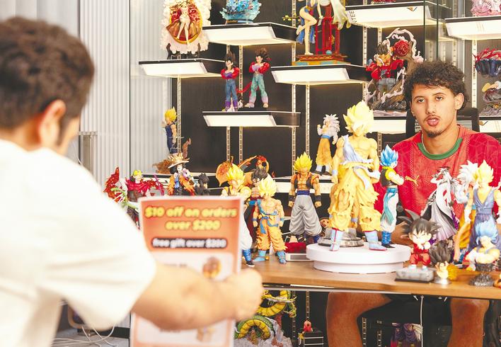 在鄂州跨境电商产业园,巴基斯坦和摩洛哥主持人向美国粉丝宣传cosplay人物。 (湖北日报全媒体记者薛婷供图)