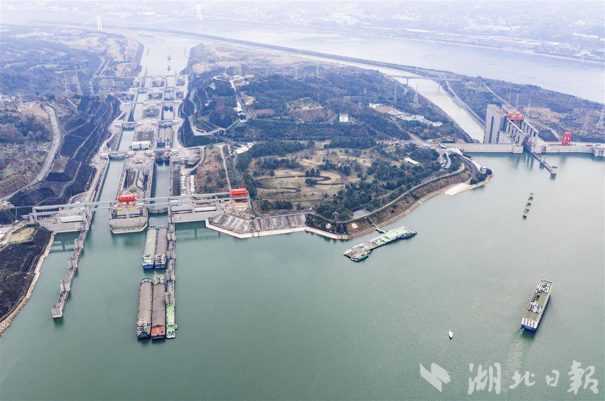 1月1日,船舶有序通过三峡大坝五级双线船闸和升船机。