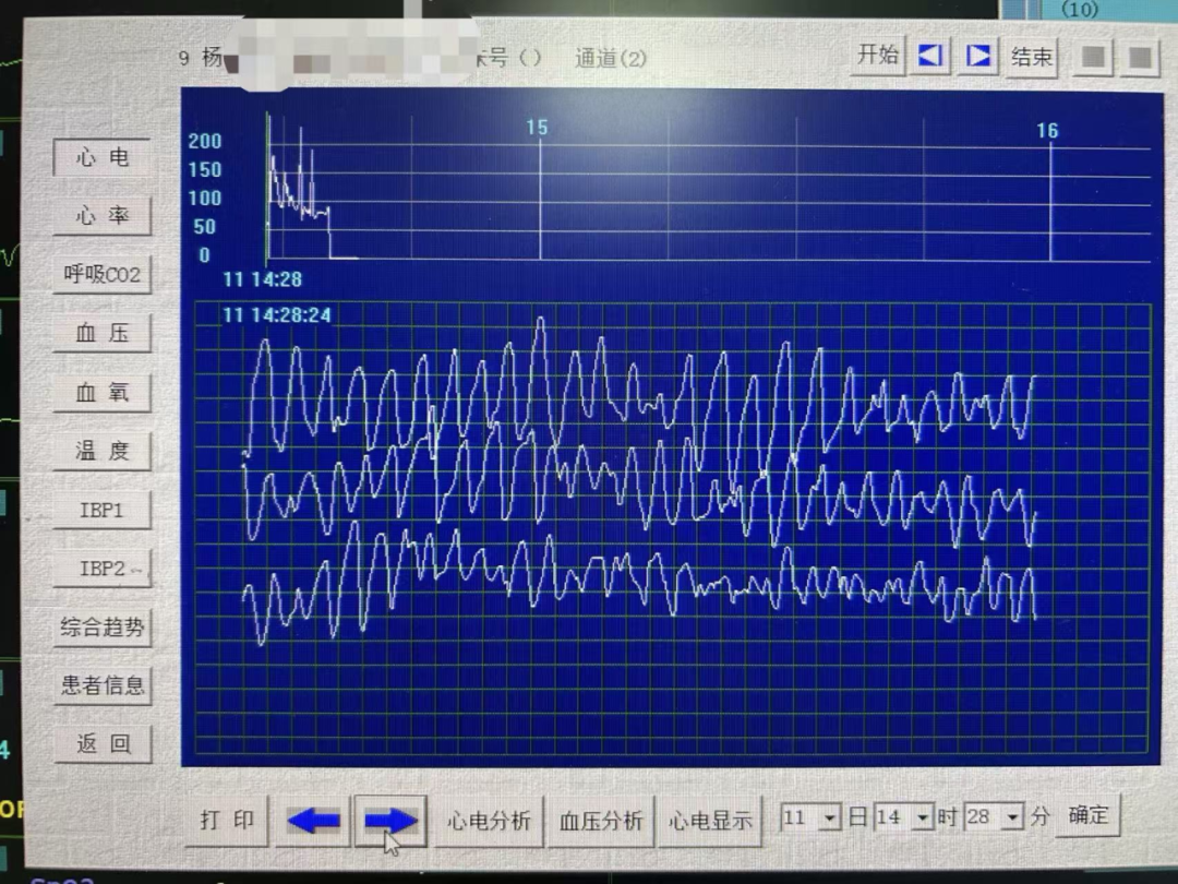当天14时28分,心血管科护士李文秀像往常一样集中精力监测远程心电监护仪。突然,一阵急促而不稳定的警报响起。就是这个警报触发了简奶奶在九号床上的远程心电图监测仪。李文秀盯着屏幕看了一会儿,发现原本规则的心电图波形变成了混乱的“蚯蚓状”。它是最危险的心律失常之一,心室颤动(心室颤动),使心脏失去工作能力有效地泵送患者的生命在几秒钟内结束。